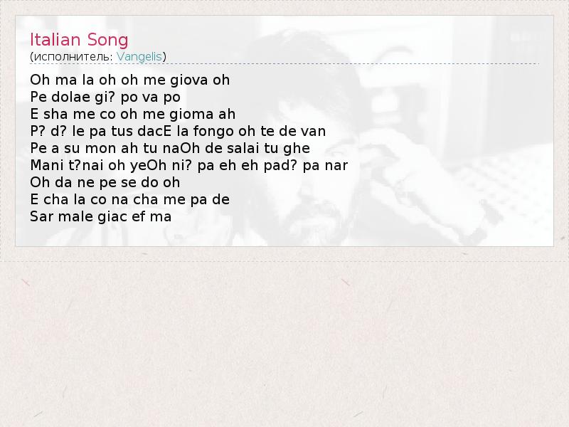 Это интересно:Вангелис (Vangelis) - композитор и исполнитель электронной музыки с мировым именем. Его настоящее имя - Евангелос Одиссеас Папатанассиу (Evangelos Odysseas Papathanassiou). Он родился 29 марта 1943 года в греческом городе Волос (Volos).Самые его известные композиции - тема из фильма "Колесницы огня" (Chariots of Fire), получившая в 1981 году премию Американской киноакадемии "Оскар"; саундтрек к фильму "Бегущий... продолжение