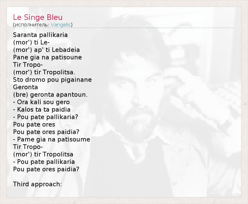 А как ты думаешь, о чем песня "Le Singe Bleu" ?