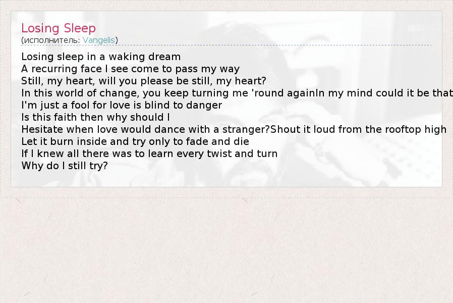 А как ты думаешь, о чем песня "Losing Sleep" ?