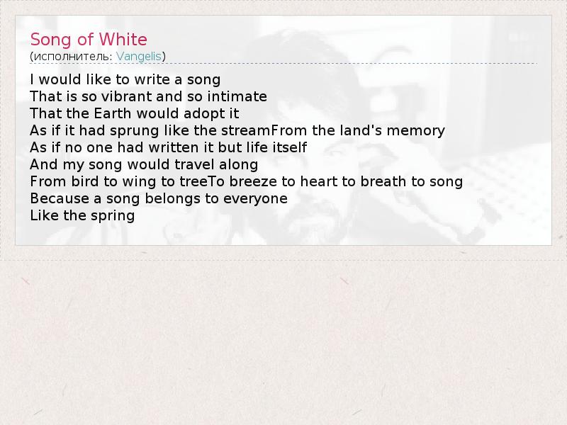 А как ты думаешь, о чем песня "Song of White" ?