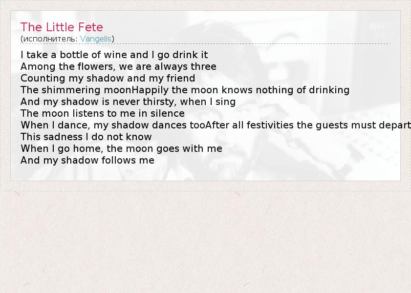А как ты думаешь, о чем песня "The Little Fete" ?