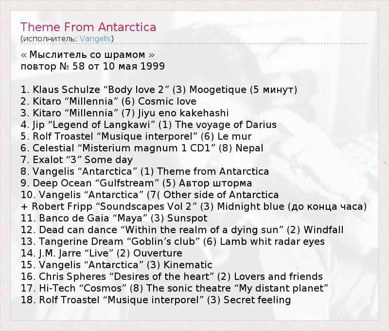 ГлавнаяИсполнителиVangelisTheme From Antarctica