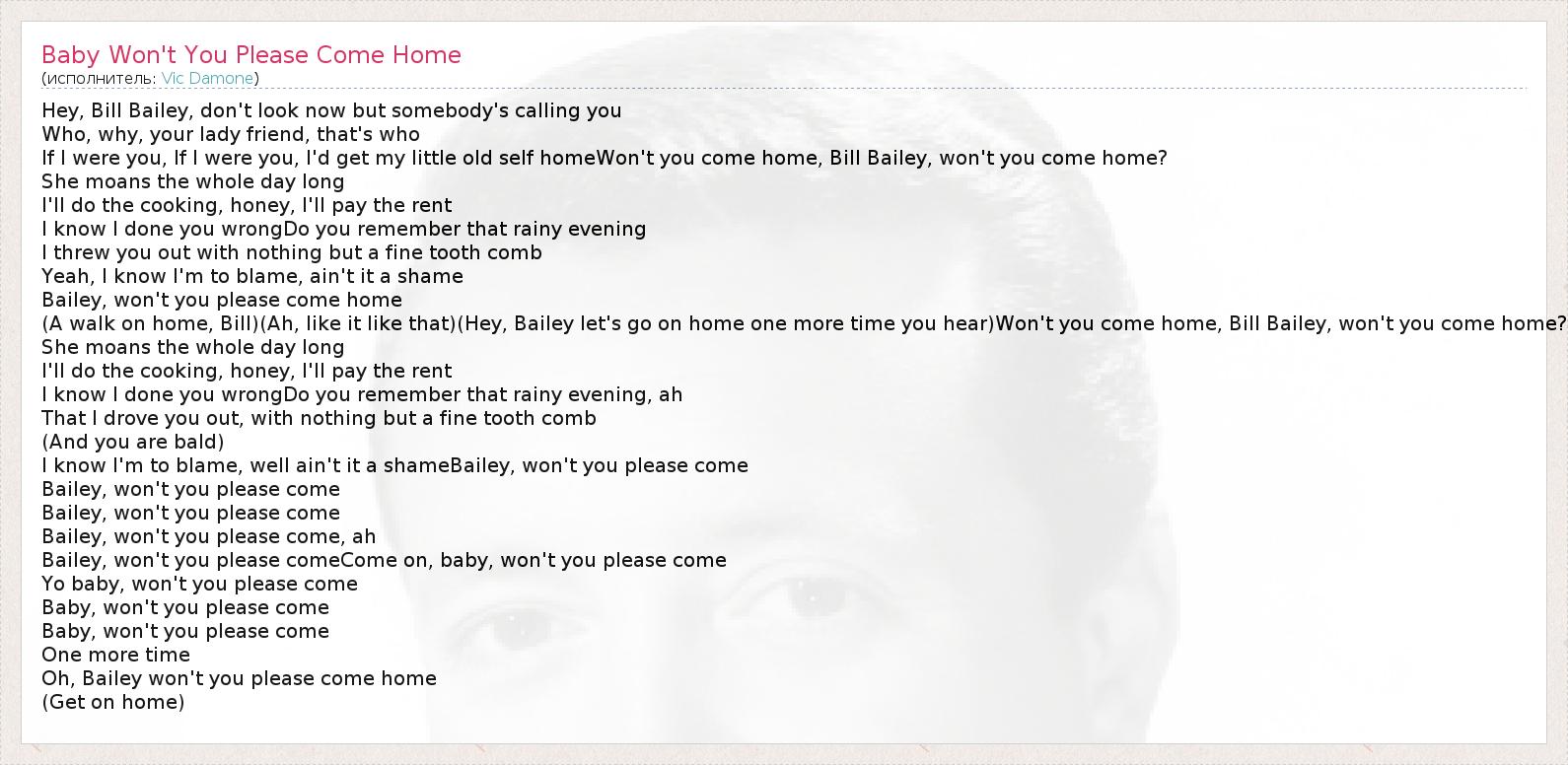 ГлавнаяИсполнителиVic DamoneBaby Won't You Please Come Home