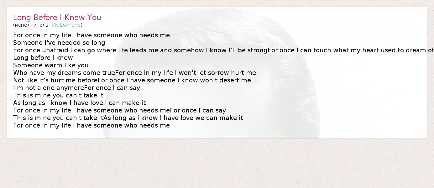 А как ты думаешь, о чем песня "Long Before I Knew You" ?