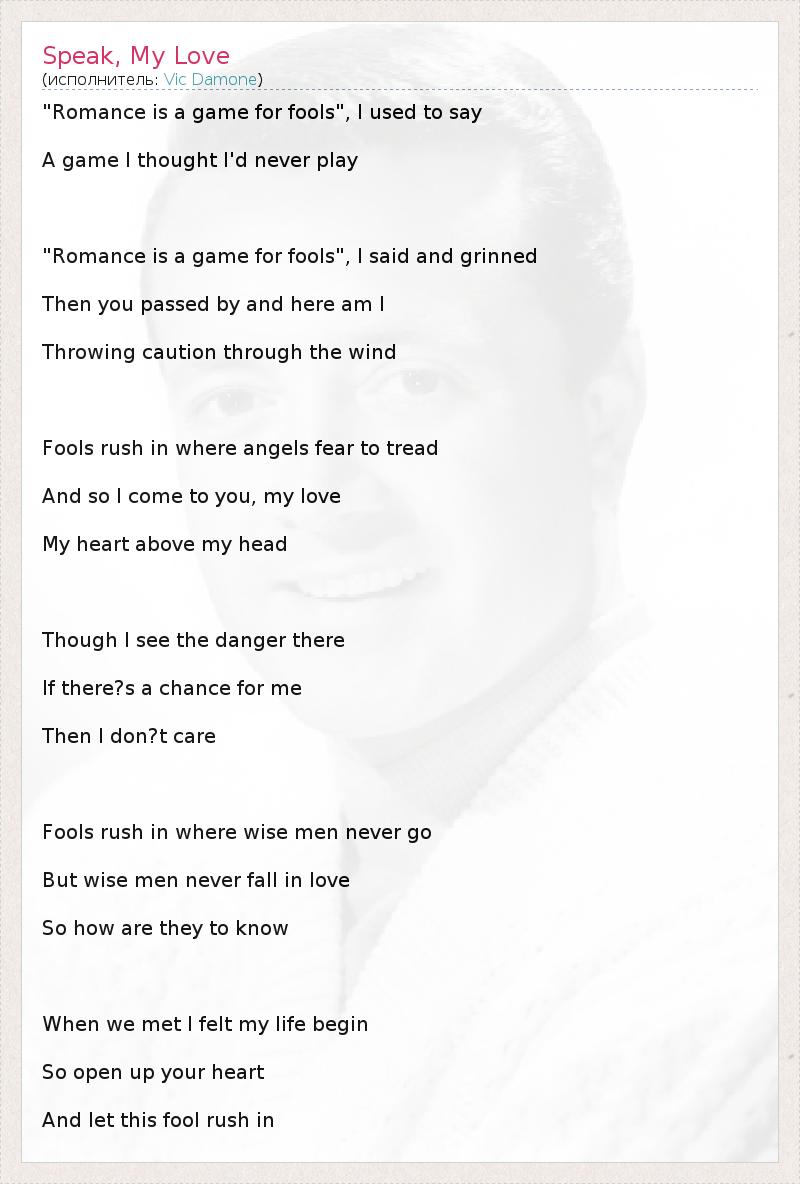 А как ты думаешь, о чем песня "Speak, My Love" ?