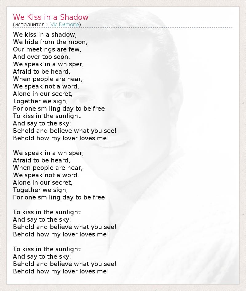 А как ты думаешь, о чем песня "We Kiss in a Shadow" ?