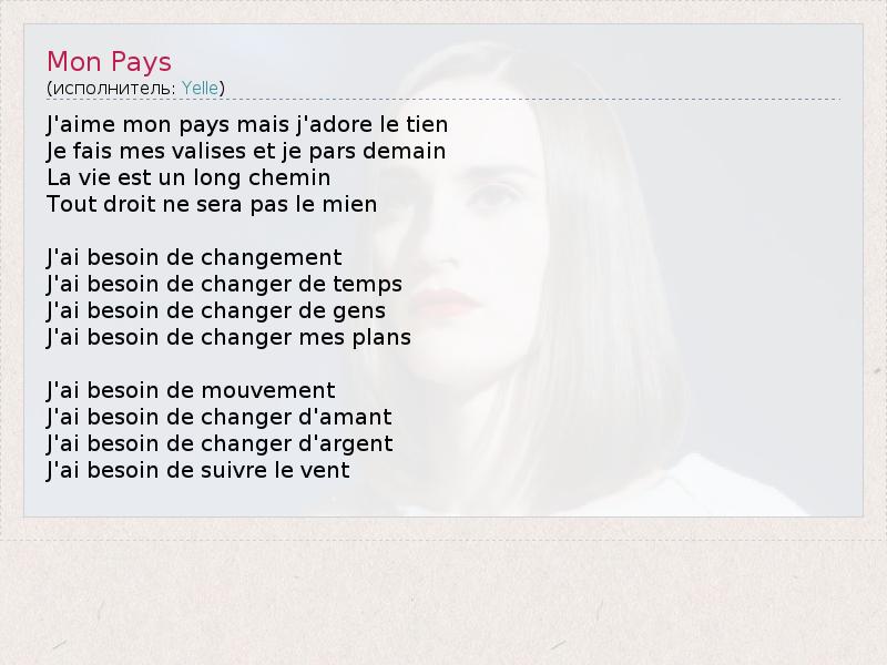 А как ты думаешь, о чем песня "Mon Pays" ?