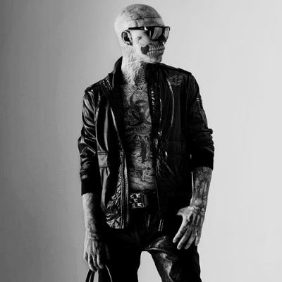 Это интересно: Рик Дженест (англ. Rick Genest; 7 августа 1985, Шатоге, Канада) — канадская модель из Монреаля, больше известен как Парень-Зомби (англ. Zombie Boy) из-за тату, изображающих скелет человекаСимвол на груди поверх головы Бафомета означает «биологическая опасность»