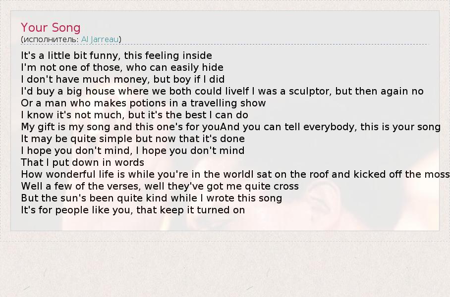 My gift is my song and this one's for youAnd you can tell everybody, this is your song
