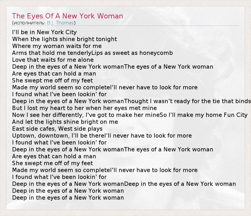 А как ты думаешь, о чем песня "The Eyes Of A New York Woman" ?