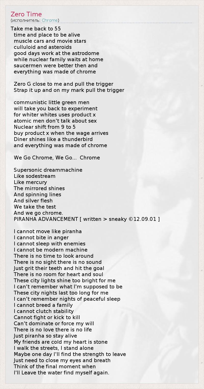А как ты думаешь, о чем песня "Zero Time" ?